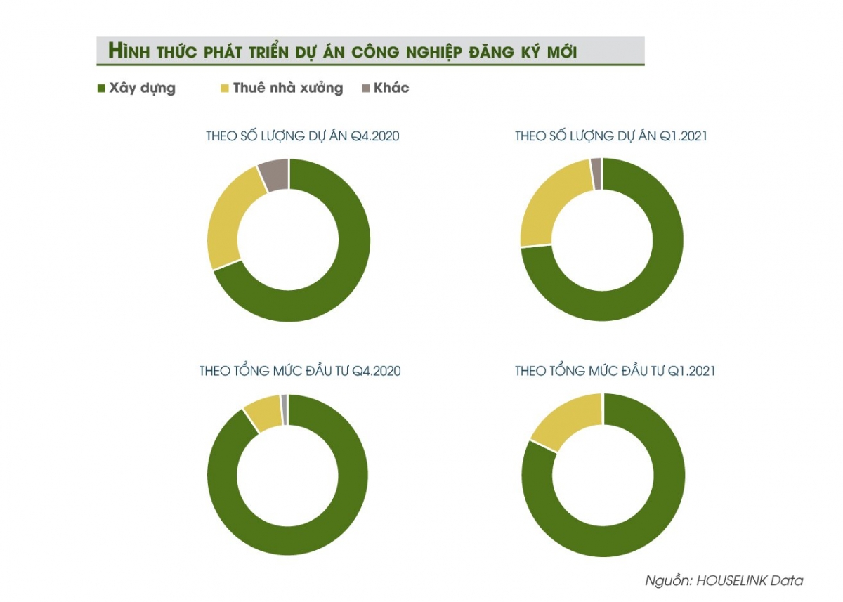 Although in the first quarter of 2021, the ratio of the number of projects that rent factories for production is similar to that of the fourth quarter of 2021, the investment registration value of these projects increased sharply when compared with the total cost of production. investment in industrial projects newly registered in the quarter