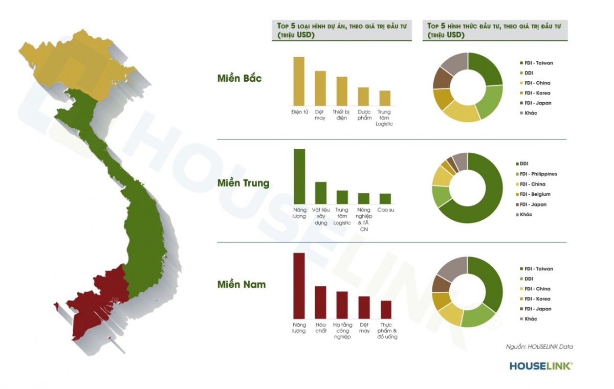 Based on data of industrial projects in the form of foreign direct investment (FDI) and domestic direct investment (DDI) on HOUSELINK platform; we synthesize, analyze data and make reports on projects under construction in the first quarter of 2021; as well as projects that are taking preparatory steps (project preparation, design, contractor selection) to prepare for construction in 2021